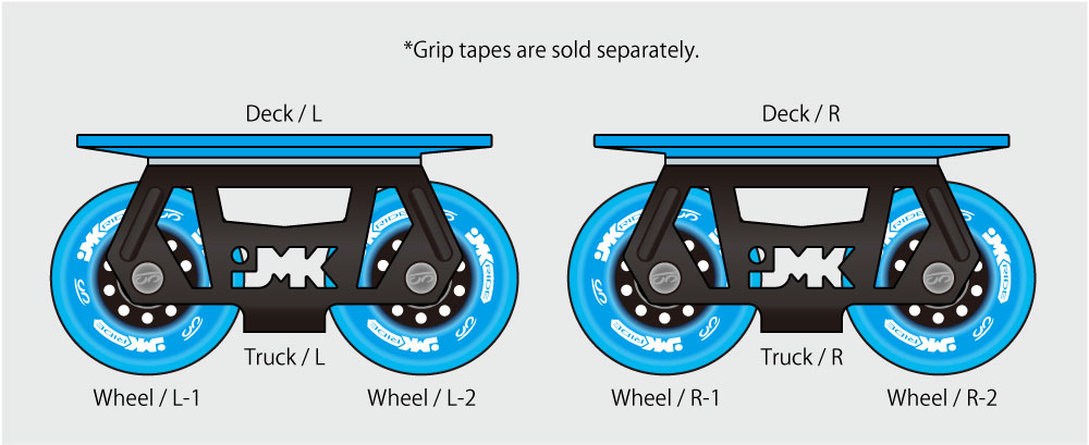 원하는 색상의 부품을 선택하고 자신의 JMK스케이트를 만들 수 있습니다.